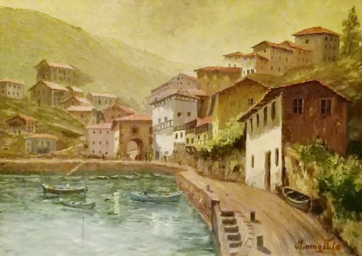 Julián Momoitio Larrinaga (Sopelana, Vizcaya, 1944) empieza a pintar desde niño; a los 14 años tiene como maestro al pintor José Luis Aldecoa. Escribe su biógrafo, Mario Ángel Marrodán: “.. y no cabe la menor duda que, desde entonces, la trayectoria de este singular artista vasco, de prestigio internacional, brilla con luz propia”. Ha exhibido más de doscientas exposiciones individuales. Cuenta con una amplia y rica biografía, reflejada en más de cien publicaciones. Obra suya se halla en importantes museos y entidades oficiales nacionales y del extranjero.